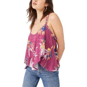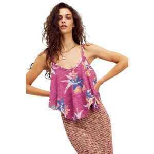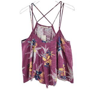 We The Free Hey Girl Tank Top S Purple Floral Print Crop Swing Tank Cotton Top