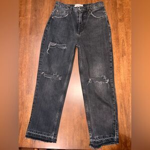 We The Free High Rise Rigid Black Wash Distressed Crop Straight Jeans Sz 26