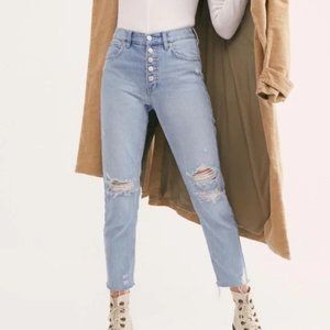 We The Free High Waisted Denim Jeans Rigid Raw Hem Button Fly Distressed Sz 24