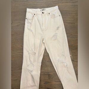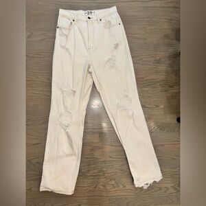 We The Free Ivory Cream High Waisted Distressed Jeans Womens size 29 Free People