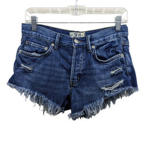 We The Free Jean Shorts 24 Distressed Denim Button Fly High Rise