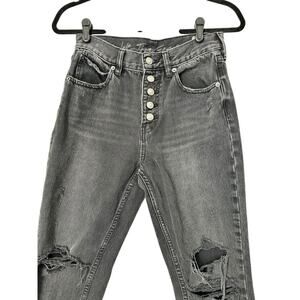 We The Free Jeans 26 Reg High Rise Black Destroyed Exposed Button Fly Raw Hem