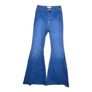 We The Free Jeans Womens 27 Blue Flare Bell Bottom High Rise Distressed Raw Hem