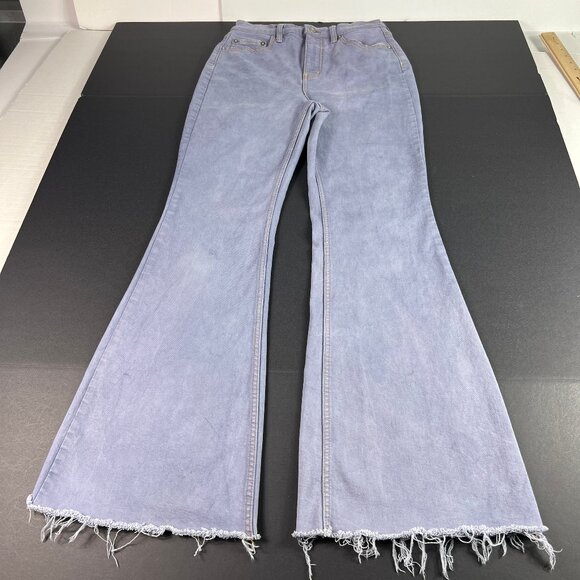 You are Buying We The Free Jeans Women's Measured 27 x 30* Curvy High Rise Flare Purple Faded Raw Hem Stretch Denim Tagged 28