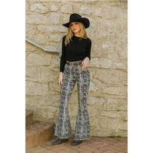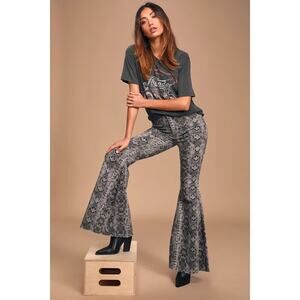We The Free Just Float On Snake Print Flare Jeans Size 26 Boho Retro 70s Style