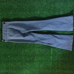 Chic light blue flare jeans. High-waisted design. Perfect for casual outings.