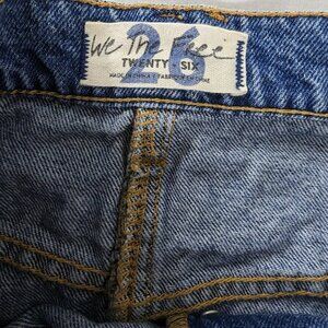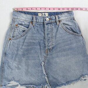 We The Free Light Wash Denim Raw Hem Cut Off Mini Skirt