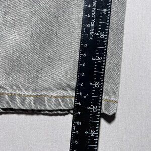 Color: Washed gray denim with contrast stitching.