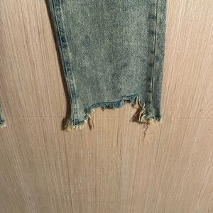 Stylish straight leg jeans with frayed hems. Perfect for everyday wear.