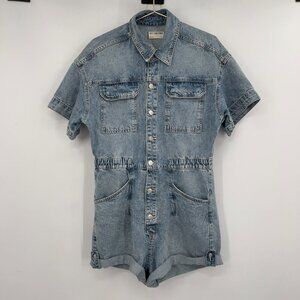 We The Free Marci Cotton Denim Short Sleeve Button-Front Romper – Size L