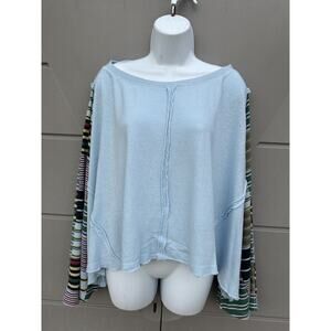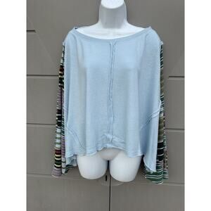 We The Free Maxwell Blue hippie Thermal Tee Long Bell Statement Sleeves Sz Large