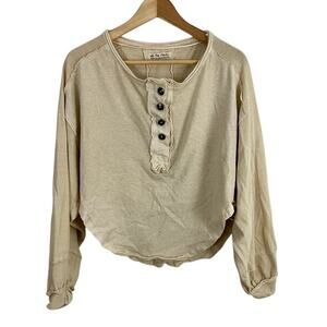 We The Free Melodi Starshine Henley Round Hem Knit Crop Top Women Size Medium