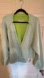 Features: Soft fabrication, deep V-neckline, button-front closures, raglan cut sleeves with ribbed knit cuffs, hand-pocket detail, raised seaming throughout