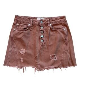 We The Free | Mini Denim Skirt Western Cowboy Cowgirl Boho Rust Bronze Brown 27