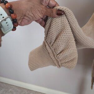 We The Free Mock Neck She's A Keeper Oversized Tan Tunic Top Size Med