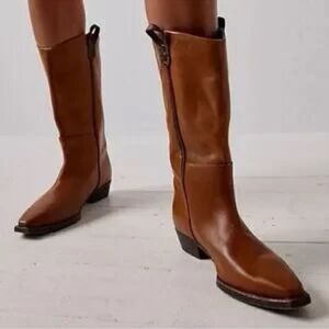 A true classic, these distressed leather boots are featured in a western-inspired design with a pointed to and subtle low heel.