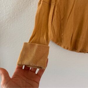 We The Free Mustard Thermal Top Medium Button Neck Long Sleeve Waffle Knit Boho