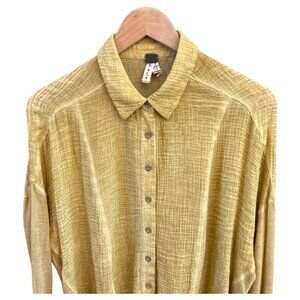 We The Free Mustard Women's Yellow Button-Up Long-Sleeve Blouse