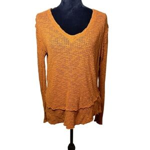 Gold rust knit top by We The Free. Ideal for casual wear.