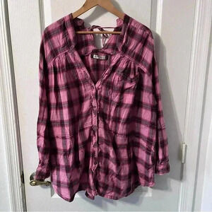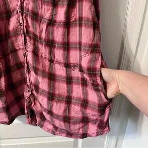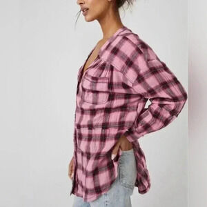 We The Free One of the Boys Plaid Tunic in Dusty Pink Combo Oversized Medium