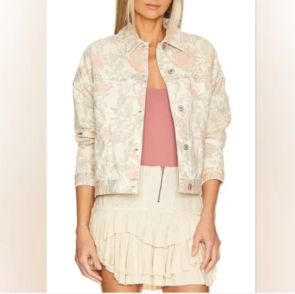 We The Free Opal Swing Printed Denim Jacket in Ivory Combo Floral