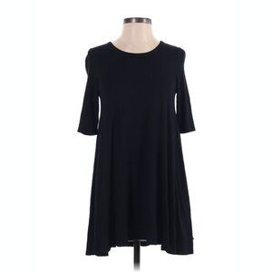 3/4 sleeve, crew neckline, a-line silhouette, solid, black, classic, knee length