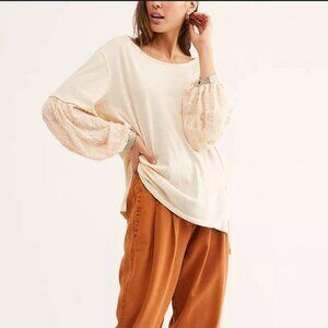 We The Free Oversized Ivory Knit Top Size Small Boho, Floral Sleeves D33