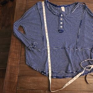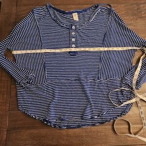 We The Free Oversized Striped Blue Long Sleeve Top Sz XS