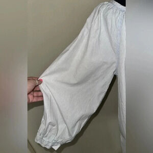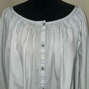 Introducing the We The Free Oxford Swing Cotton Striped Tunic Top - NWT! This stunning top features a round neckline with a button closure and 3/4 balloon sleeves, making it perfect for any occasion, from travel to party and cocktail events, casual hangouts, or business meetings. The blue striped pattern and fringe accents add a touch of bohemian vibe to the garment, while the lightweight woven cotton fabric ensures comfortable wear in any season.