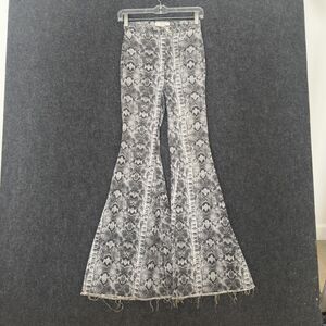 We The Free Pants Women's 25 Gray Black Snake Print Flare Bell Bottom Jeans