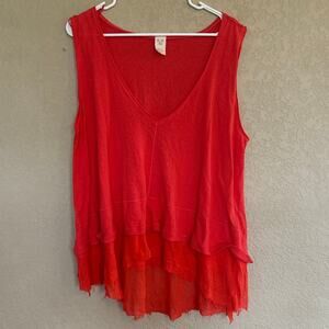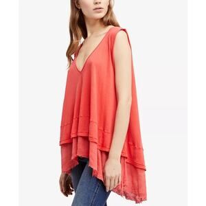 We The Free Peachy Sleeveless V-Neck Oversized Layered Tank Top Hot Coral Small