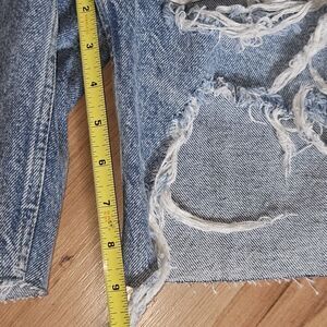 These extremely distressed shorts are made to fit loose. They are a size 24, with a 28 inch waist and 9 inch inseam. New with tags.