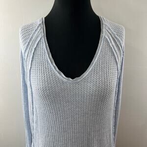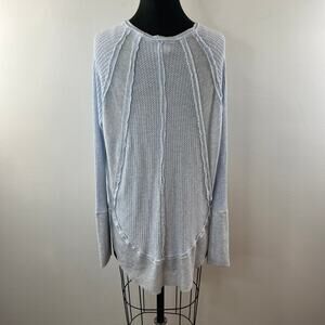 We The Free Blue Sweater Top Thermal Waffle Knit Ruffled Hem Pullover Size Small