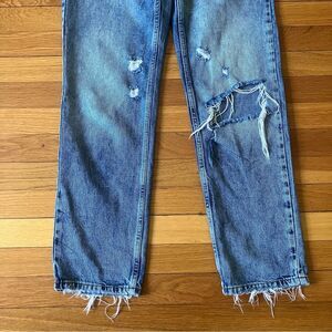 We The Free People Blue Distressed Straight Leg High Rise Denim Jeans 27