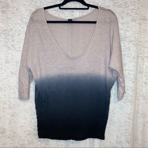 We The Free People Blue Ombre Top Tee Loose Fit T-Shirt 3/4 Sleeve Large L