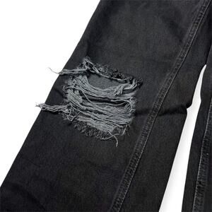 We The Free People Busted Knee Cropped Jeans SIZE 26 Distressed Denim Frayed Hem Button Fly