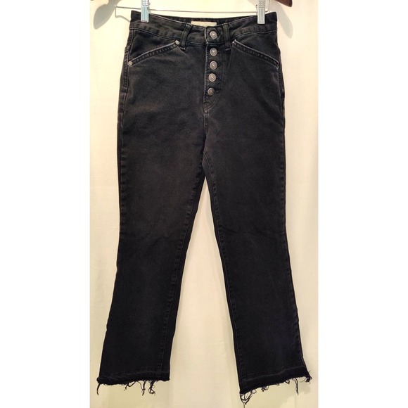 We The Free People Button Fly High Rise Straight Leg Black Denim Jeans Size 25