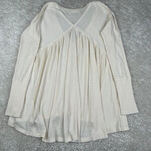 We The Free (Free People) Citrine Knit Henley Top. Gently preowned in good overall condition. no stains or holes. Slight sheer, thin fabric. Flowy