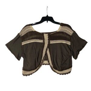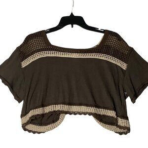 We The Free People Crochet Crop Top Women Small Brown Tan Open Back Open Knit