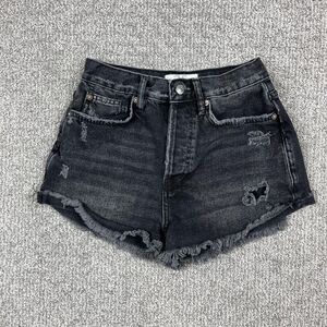 We The Free People Denim Shorts Womens 25 Lasso Black Distressed Button Fly