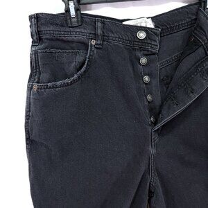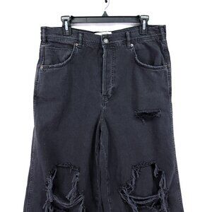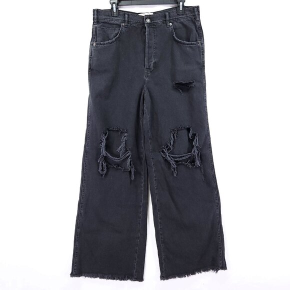 We The Free People Distress Baggy Jeans Size 30 Black Wide Leg Denim Button Fly