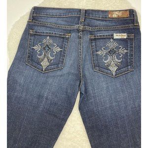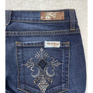 We The Free People Flared Leg Jeans Womens 29 Low Rise Embellished Medium Wash Rhinestone Pockets