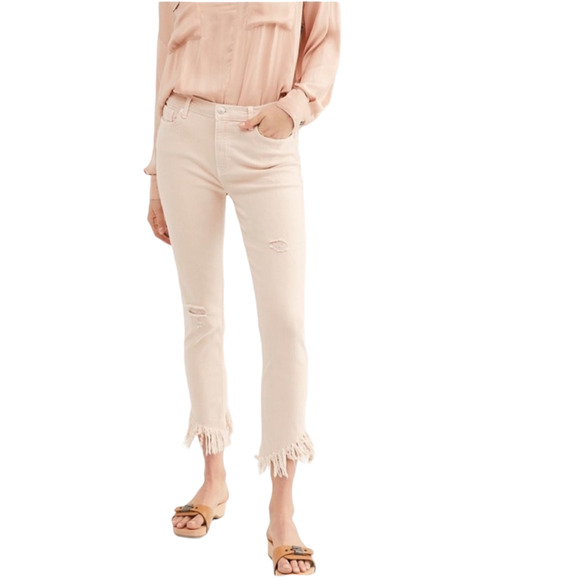 WE THE FREE PEOPLE GREAT HEIGHTS FRAYED SKINNY JEAN WOMENS 24 PINK STRETCH *READ