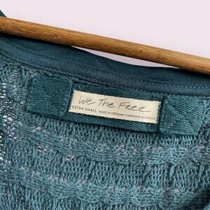 We The Free People Green Knit Top XS V Neck Oversized Cozy Boho