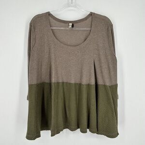 We The Free People Half and Half Colorblock Thermal Top Brown Green Size Medium