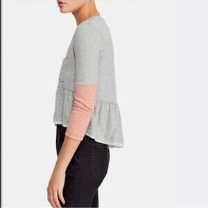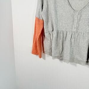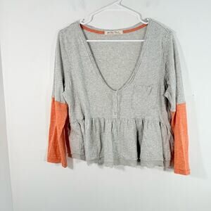 We The Free People Heart Of Mine Gray Coral V Neck Peplum Top Large