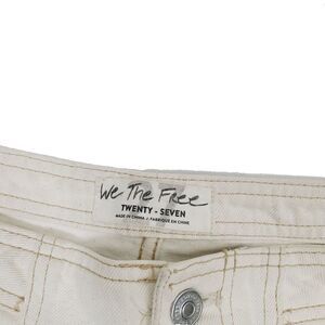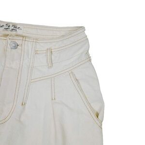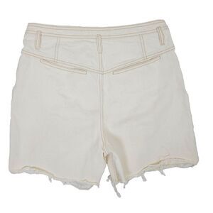 We The Free People Jean Shorts 27 Beige High Waisted Raw Hem Denim Mom Short