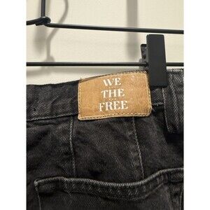 The product is a pair of We The Free People jeans in a size 26, featuring a solid gray color with a charcoal wash. These low-rise straight jeans are made from 100% cotton denim and have a relaxed fit, making them comfortable and stylish. The button and zipper closure, along with the logo accents, add a touch of flair to the design. With a 33-inch inseam and pockets, these jeans are perfect for the winter, fall, and spring seasons.