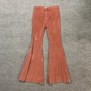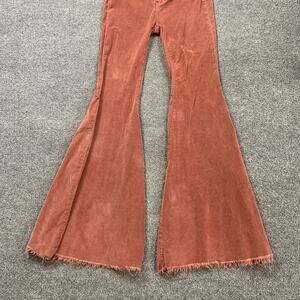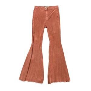 We The Free People Jeans Women 25 Deep Rose Just Float On Corduroy Flare Raw Hem