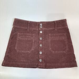 We The Free People Joanie Brown Corduroy Mini Skirt Size 26 Button Front Y2K